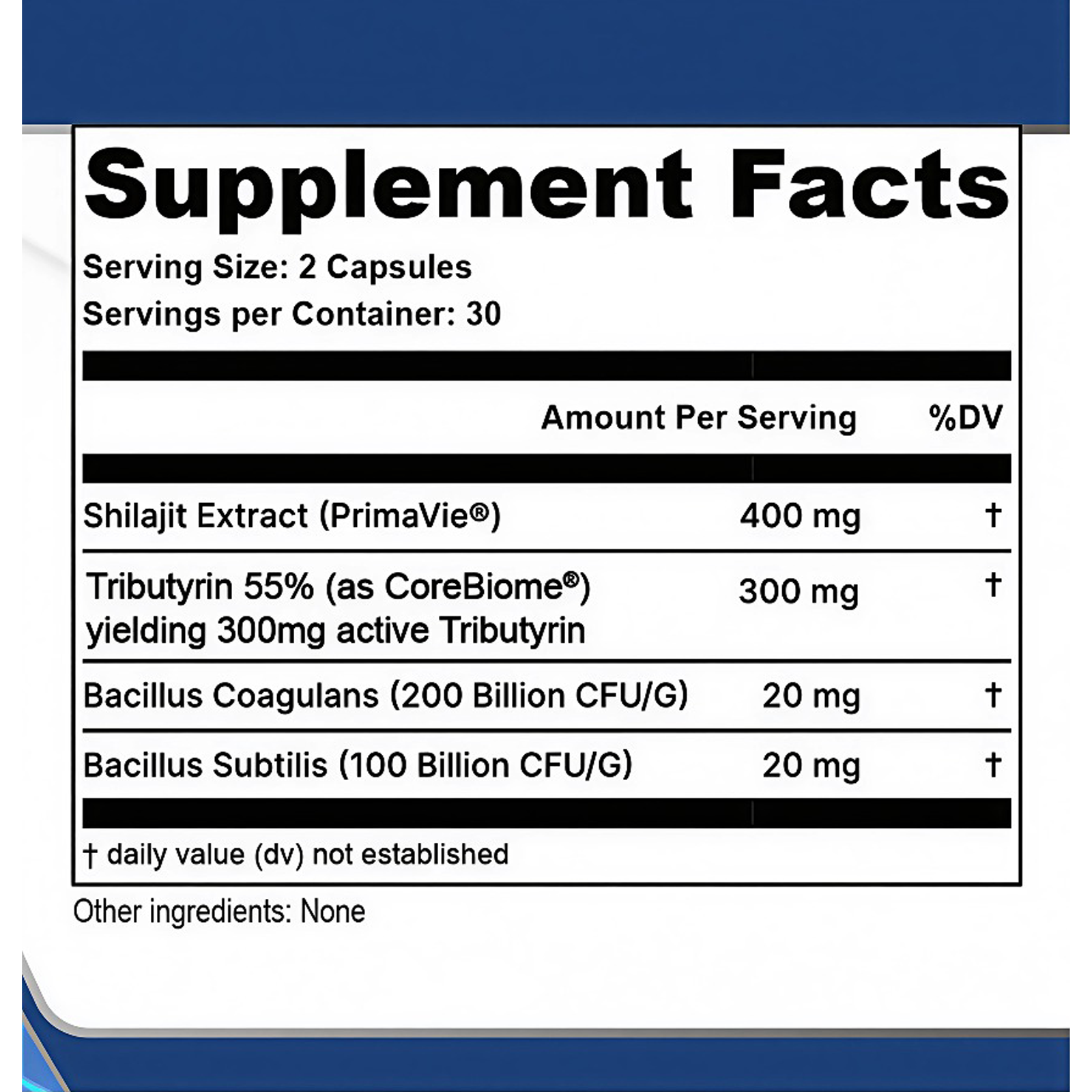 We combined the power of Shilajit with Bacillus strains of spore forming probiotics and CoreBiome postbiotics.