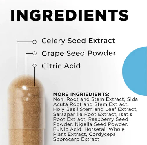Para 4 is a blend of 11 potent herbs known for supporting digestion, detoxification, and immunity – including extracts of celery seed, cordyceps sporocarp, holy basil stem and leaf, horsetail, noni root and stem, and sarsaparilla root